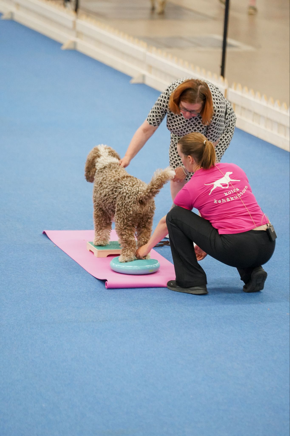 Tässä koulutuksessa yhdistyvät näyttelykoiran keskeiset kehätaidot ja fyysinen kehäkunto –